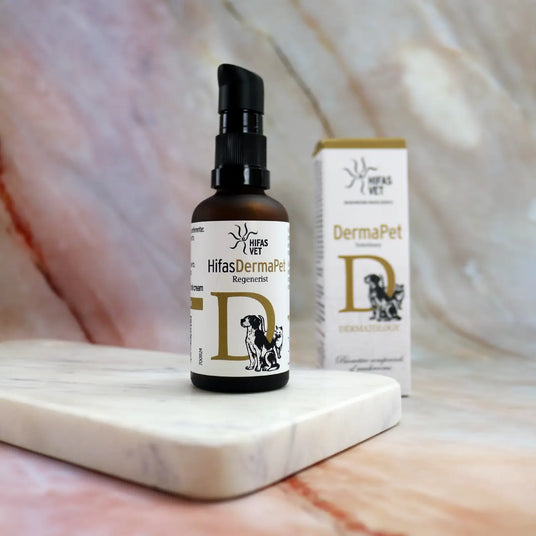 HIFAS DERMA PET es una crema innovadora que aporta hidratación y reparación de la barrera cutánea de la piel de las mascotas. Presenta una textura ligera que se absorbe rápidamente y no es untuosa. Además, no presenta efectos secundarios si el animal pudiera lamerse las zonas de aplicación.