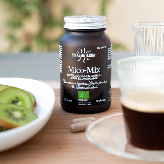 Mico Mix es un complemento alimenticio ecológico en cápsulas vegetales de extractos de Reishi, Maitake y Shiitake 100% puros y vitamina C proveniente de la acerola. Mico-Mix contribuye al mantenimiento saludable de la función circulatoria*.